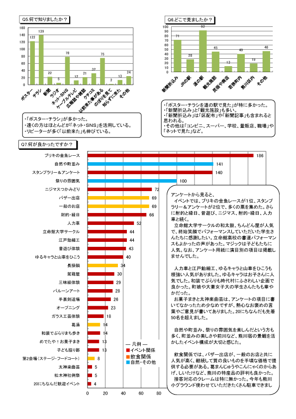 多くの皆様からアンケートをいただきました。今後のイベント計画に役立てたいと思います。まことにありがとうございました。