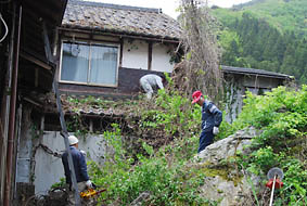 また、所有者のご承諾を得て、長年放置されている空き家周りの草刈りなどを行いました。