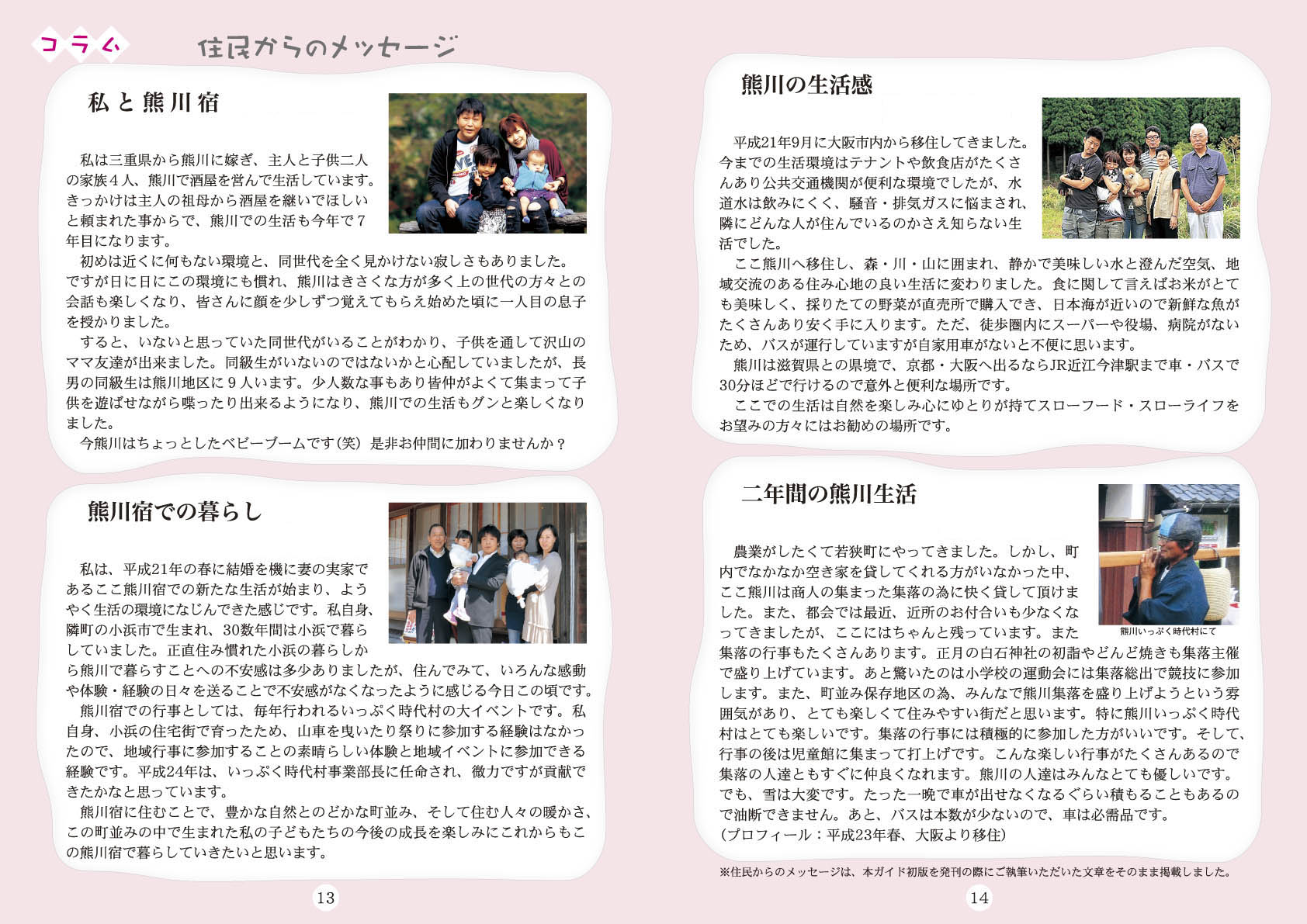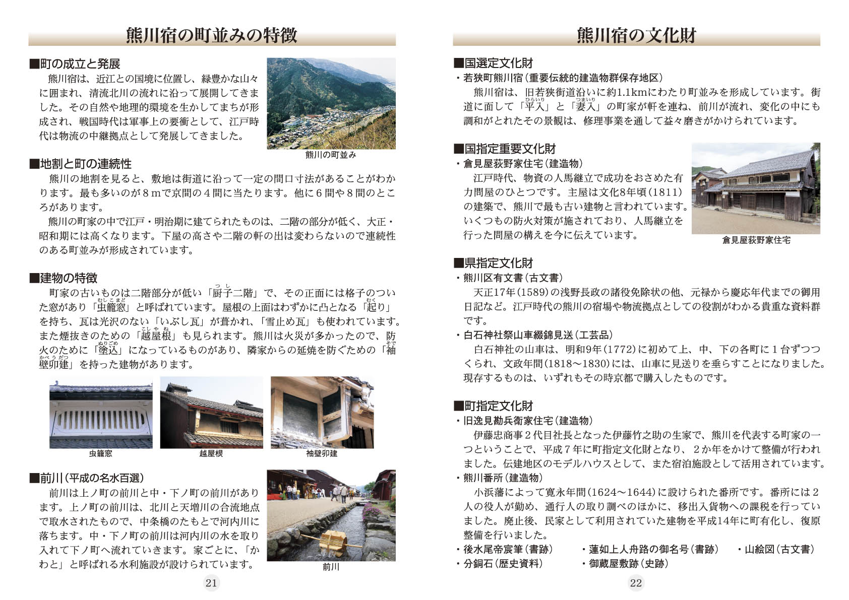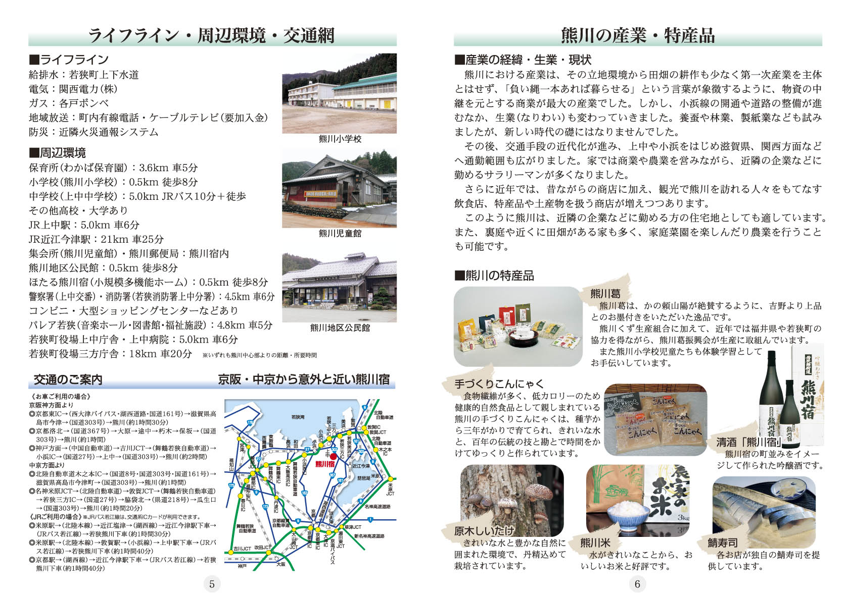 熊川宿での生活をお考えの方のためのガイドブック「熊川宿暮らしのガイド」は、平成24年度に社団法人近畿建設協会や立命館大学政策科学部高村教授のご協力を得て製作したものです。今回、熊川宿へ何度もお見えになるリピーターさんからの要望もあり改訂版を増刊しました。