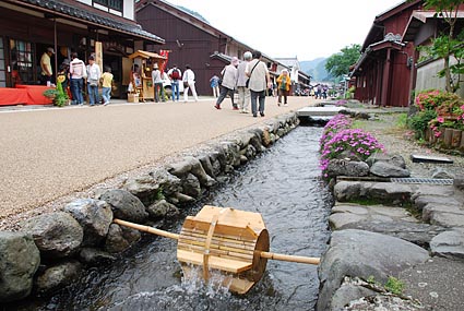 平成八年からは景観整備が行われ、石積み護岸の前川が町並みと実に良く調和しています。また住民による前川沿いの花の育成や清掃活動が行われ、住民自らが清涼な流れを守り、訪れる人々に潤いと癒しの空間を提供しています。