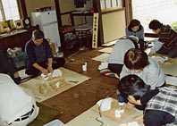 熊川宿には町の公開施設「旧逸見勘兵衛家」を活用した「熊川宿おもてなしの会」が運営する喫茶店と宿泊施設があります。なかでも宿泊施設は、町のグリーンツーリズム事業に沿って、各種の体験事業を行うことになっており、熊川宿では、地元住民の特技や趣味を活かした体験場所を提供しています。今回、その体験事業に関わる区民10名が参加し、「箸置き」を造る陶芸の体験を行いました。観光客が体験することを会員が実際に体験し、来訪者に対して体験事業や熊川宿へのリピートをPRしていきたいと考えています。