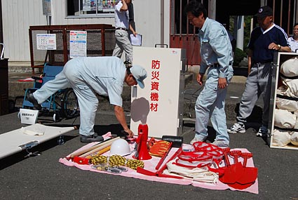 熊川区に配備された小型消防ポンプや防災資機材は、宝くじの売上金を財源とした「コミュニティー助成事業」で購入したものです。