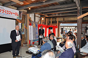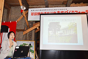 続いて第一部のフォーラムに移り、記念講演では、文化庁文化財調査官の清永洋平氏が、「がんばる伝建地区〜全国から見た熊川宿のまちづくり〜」と題して、「熊川宿は伝建地区の中でも建造物の密度が高い。いっぷく時代村など住民あげてまちづくりに取り組んでいる」と講評をいただきました。