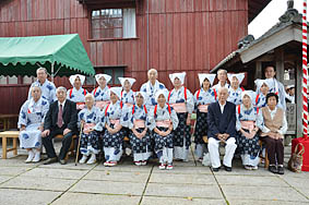 写真:左から土井祥子氏・清永洋平氏・一乗寺郷土芸能保存会の皆さん・てっせん踊り