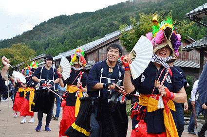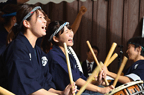 今年も笑顔いっぱい、パワー全開の立命館大学サークル。和太鼓は「ラッセーラー!」の掛け声とともに街道を演舞しながら練り歩き。