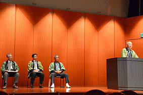 平成27年4月24日に開催された日本遺産認定イベントで、森下若狭町長が河合氏の功績をたたえ、今日までの活動に対し感謝とねぎらいの言葉を述べられました。