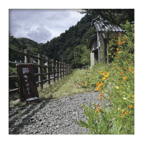 熊川宿のほぼ中央に位置するちょっといっぷくできるところです。熊川児童館の軒先で、ベンチが設置され、真夏の日差しや雨が凌げます。真夏は「前川」に手や足を浸けると気分爽快です。