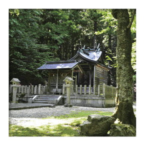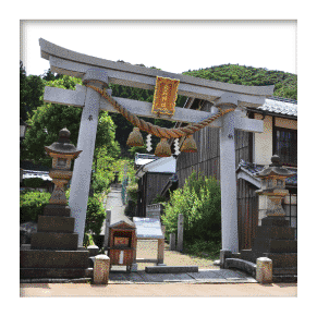 上ノ町の山側にあり、通称「権現さん」と呼ばれる水雨火防の神様を祀る神社。昔、上ノ町では、道の表面に白い石が出ると村に火災や水害が起きたことがありました。そこで村人が相談をしてお社を建てて、この白い石をお祀りすることになったのが、この神社のいわれであるとされています。
