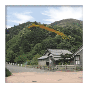 かつては近江から若狭へ入る初めての集落が大杉でした。熊川よりも前に開けたという言い伝えがあり、鎌倉時代末には関所が設けられ往来を監視したと『熊川村誌』に記されています。 北川に沿って街道があり、その南側に家並みが続きます。谷あいが迫り、北川と山並みの自然が美しいところです。街道から水路橋や井根(堰(せき))も見えます。 ※水路橋は立入禁止です。 ※居住区につき見学の際はお静かにお願いします。