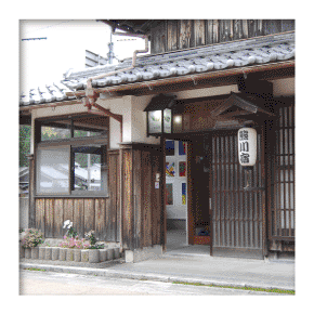 前川に面する大きな店構えや菱印のついた暖簾のかかる通り庭、帳場、仏間、座敷に至る奥深い間取りなどに、大きな経済力を持った問屋の風格を感じることができます。 古民家の佇まいをそのままにリノベーションされ、複数の事業者などが共同で間借りするシェアオフィスとして生まれ変わりました。 街道シェアオフィス&スペース菱屋ホームページ