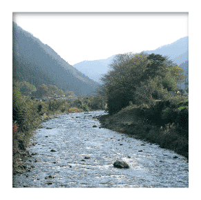 北川水系北川は、その水源を野坂山地の三十三間山東側付近に発し、滋賀県の天増川(あますがわ)を源流に、福井県の小浜湾に注ぐ全長30.3kmの一級河川で、近畿一美しい水と讃えられています。熊川付近はその上流域にあたり、かつては鮎釣りが盛んで多くの釣り人が訪れ、夏には子どもたちが水浴びもしました。今も北川の流れと周辺の山々との調和を見ることができます。