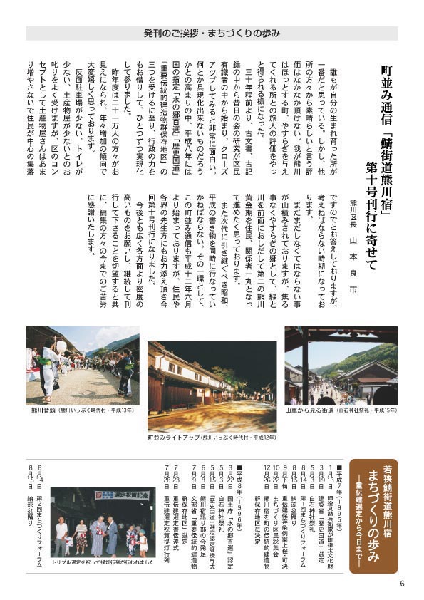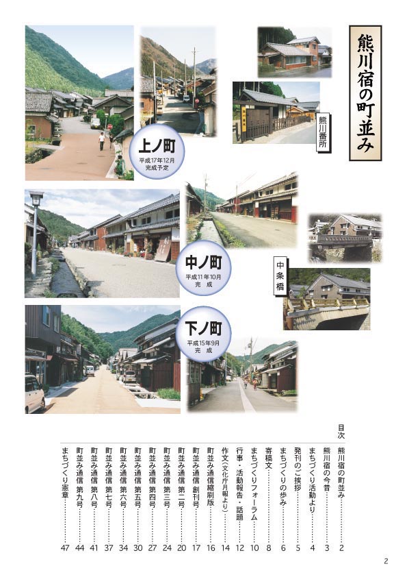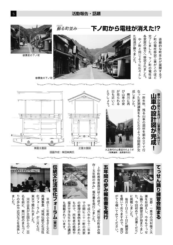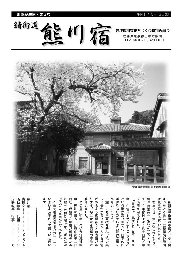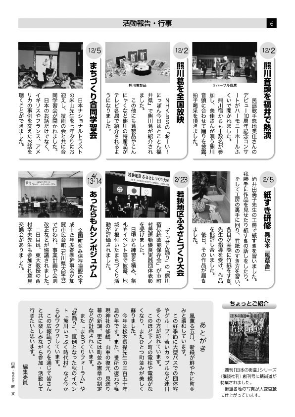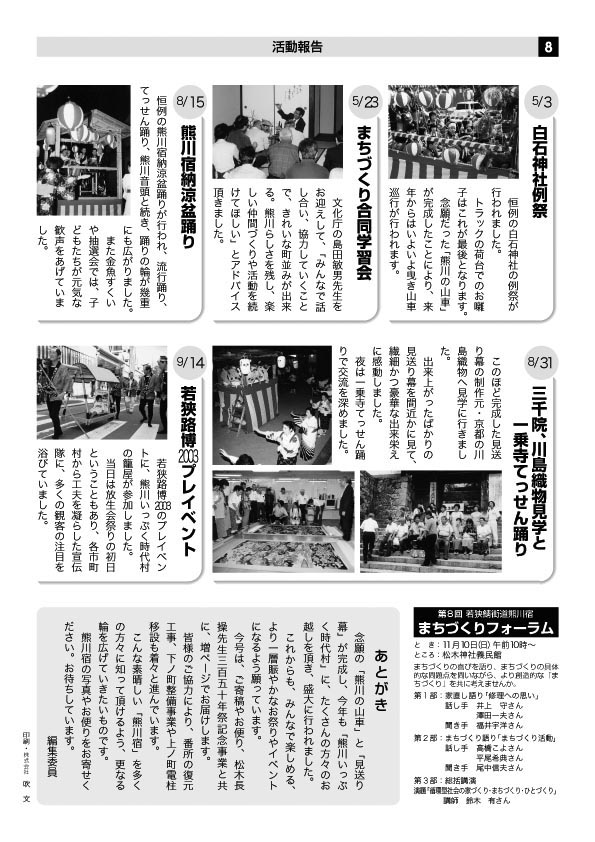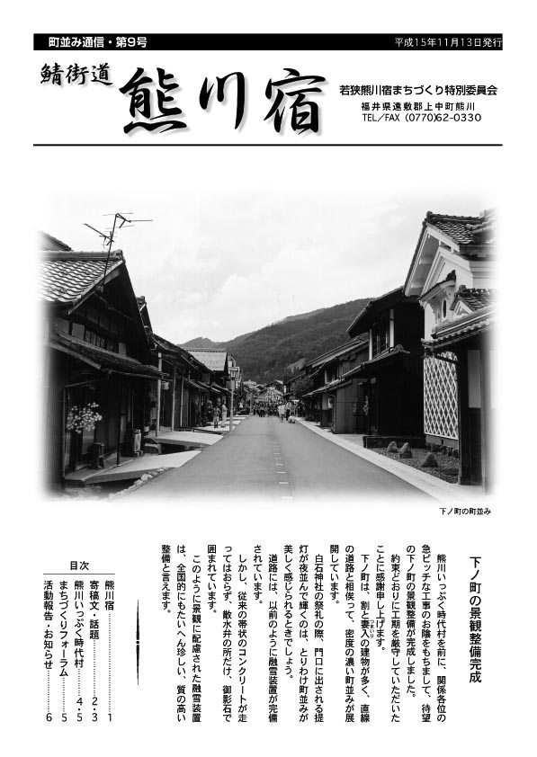 掲載内容:下ノ町景観整備完成・寄稿文・熊川いっぷく時代村・フォーラム・活動報告