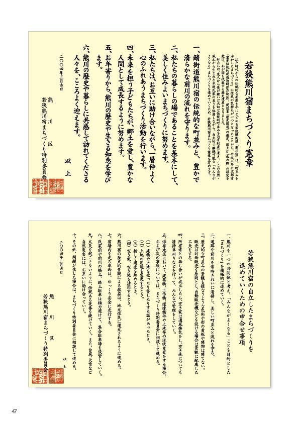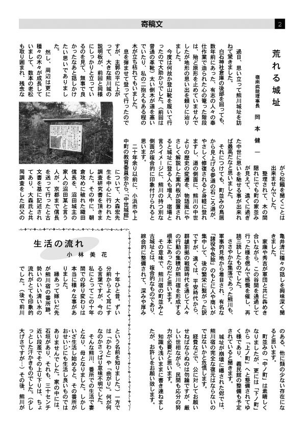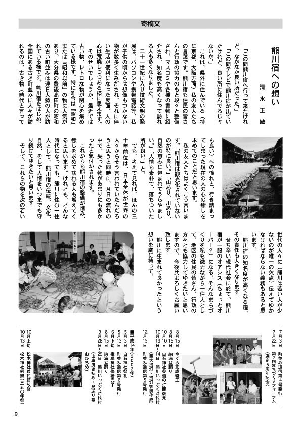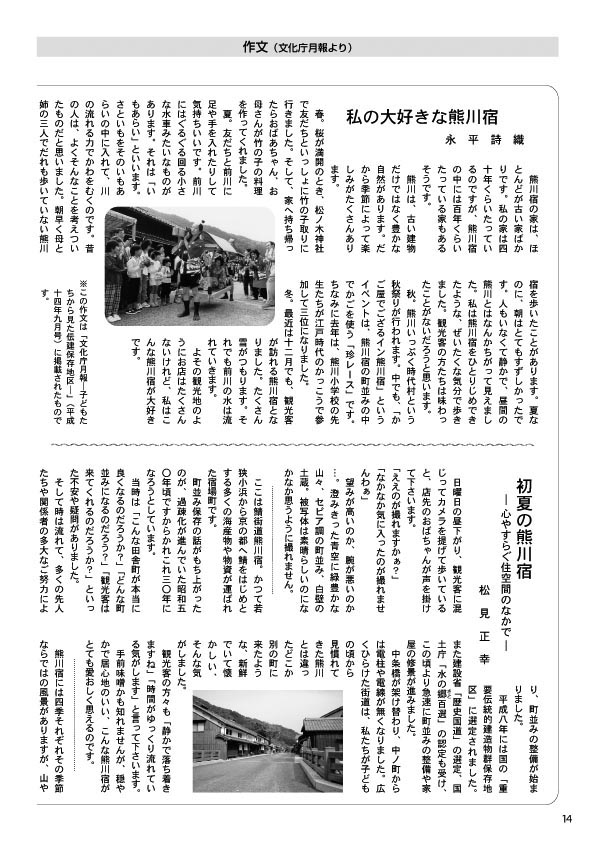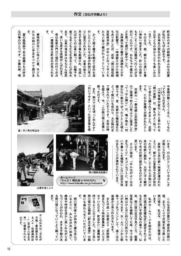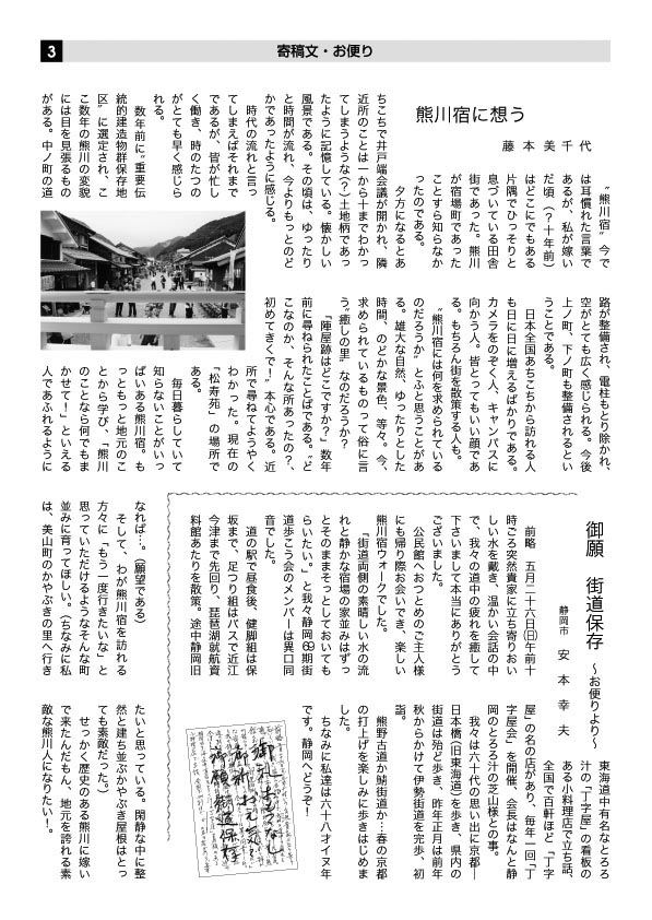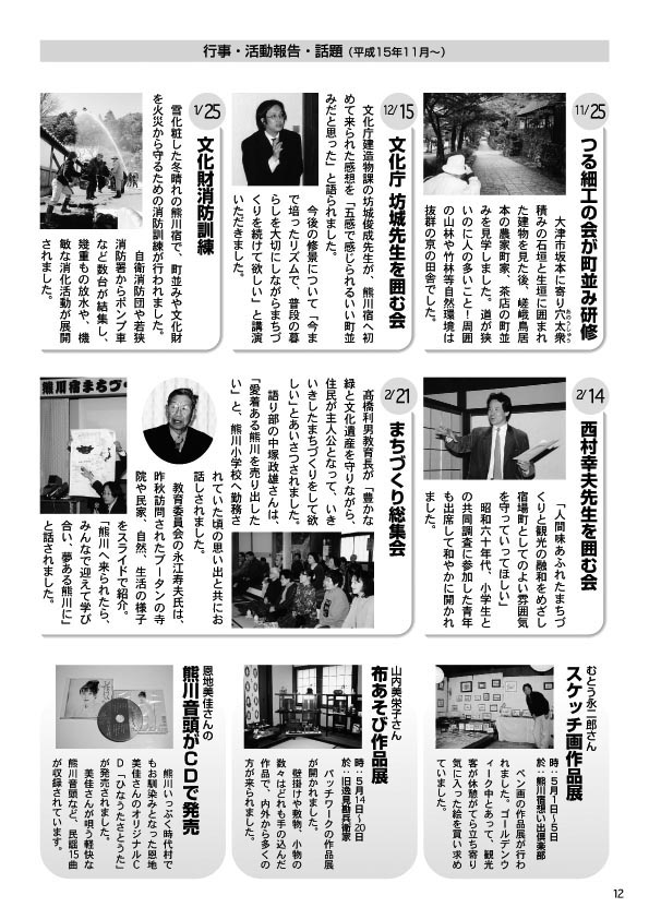 掲載内容:下ノ町景観整備完成・寄稿文・熊川いっぷく時代村・フォーラム・活動報告