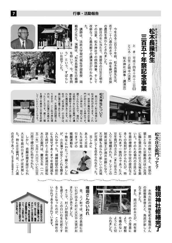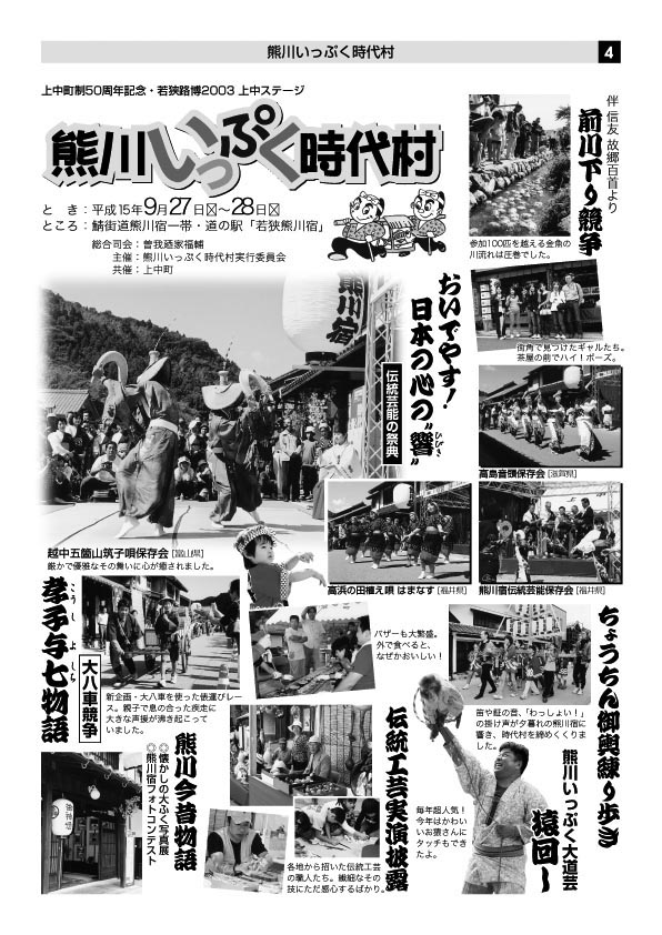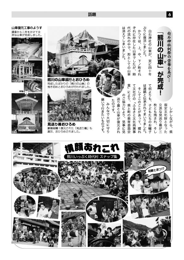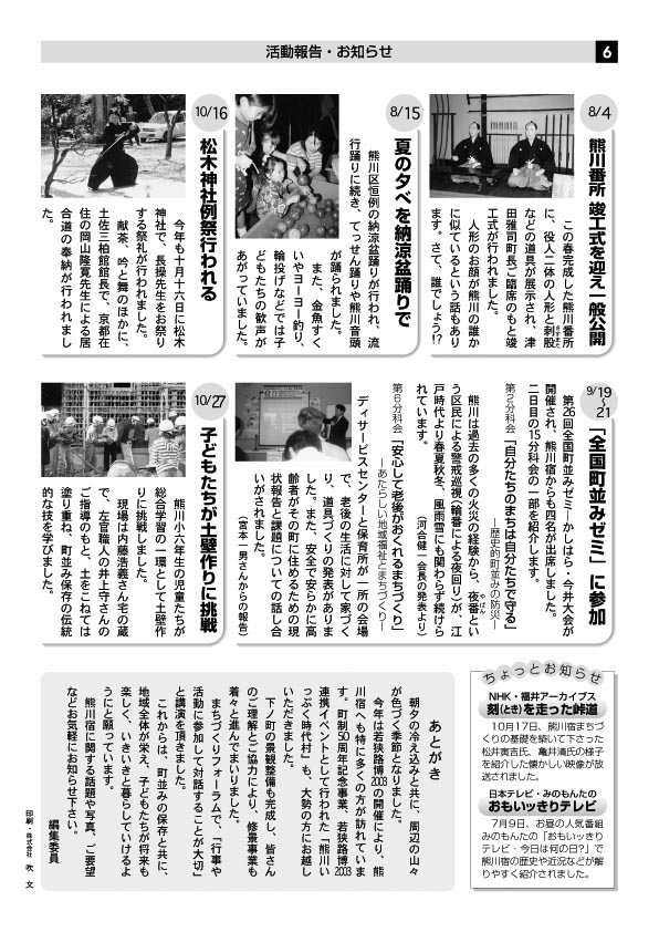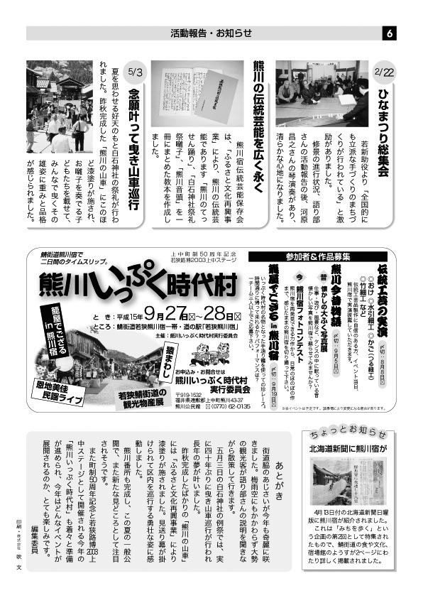 掲載内容:山車曵き初め・寄稿文・熊川いっぷく時代村・行事話題・活動報告
